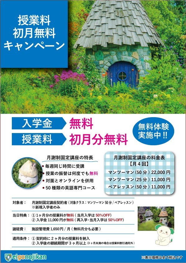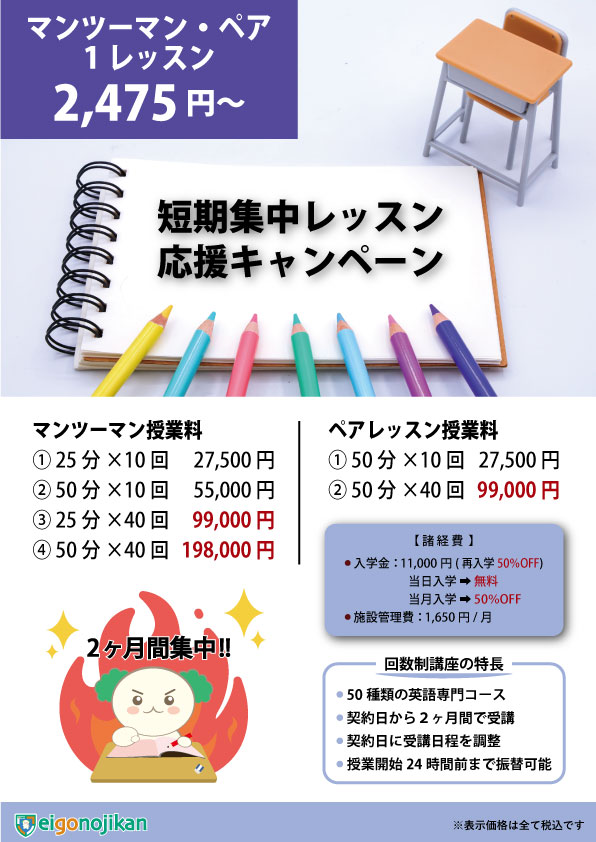 ●E-Master20(税込):マンツーマン25分×20回 55,000円